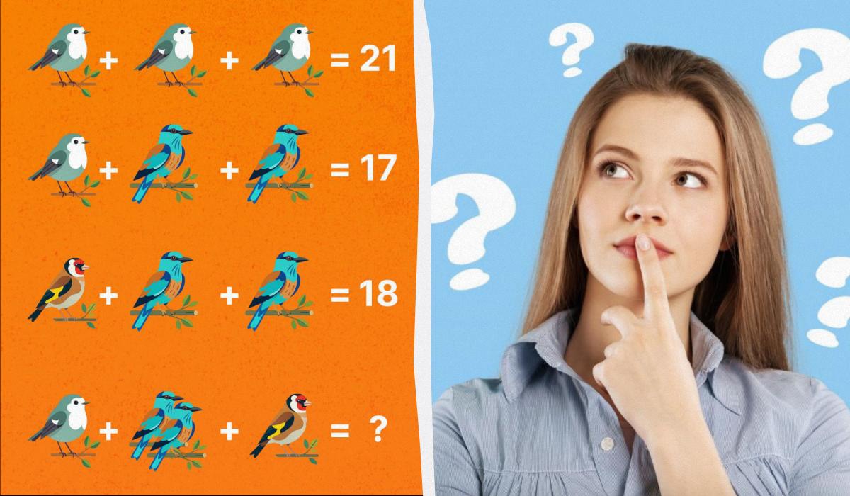 Musisz dowiedzieć się, jaka będzie suma, jeśli zsumujesz trzy liczby symbolizowane przez każdego ptaka. Gotowy? Czas minął.
