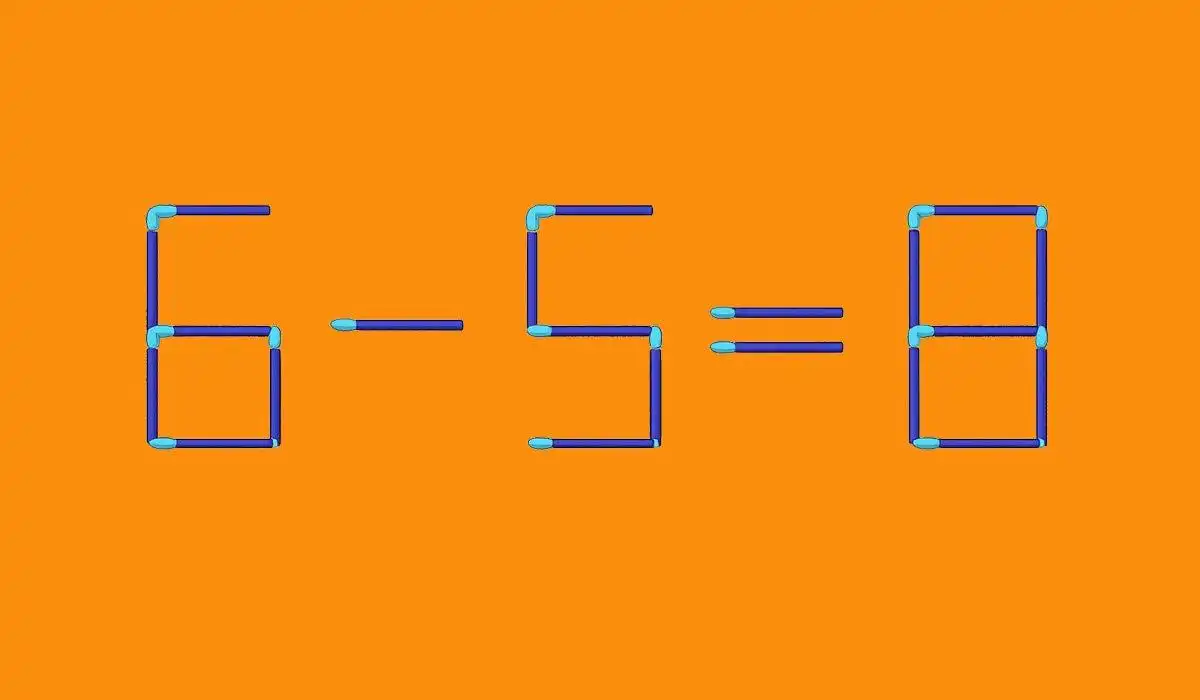 Na poniższym obrazku zobaczysz wyrażenie matematyczne 6-5=8, ułożone z zapałek. Jest w nim błąd, który musisz poprawić.