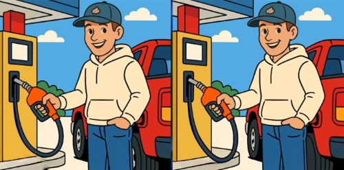 Przyjrzyj się uważnie dwóm zdjęciom przedstawiającym mężczyznę tankującego samochód. Na początku może się wydawać, że zdjęcia są całkowicie identyczne, ale w rzeczywistości istnieją między nimi trzy małe różnice.