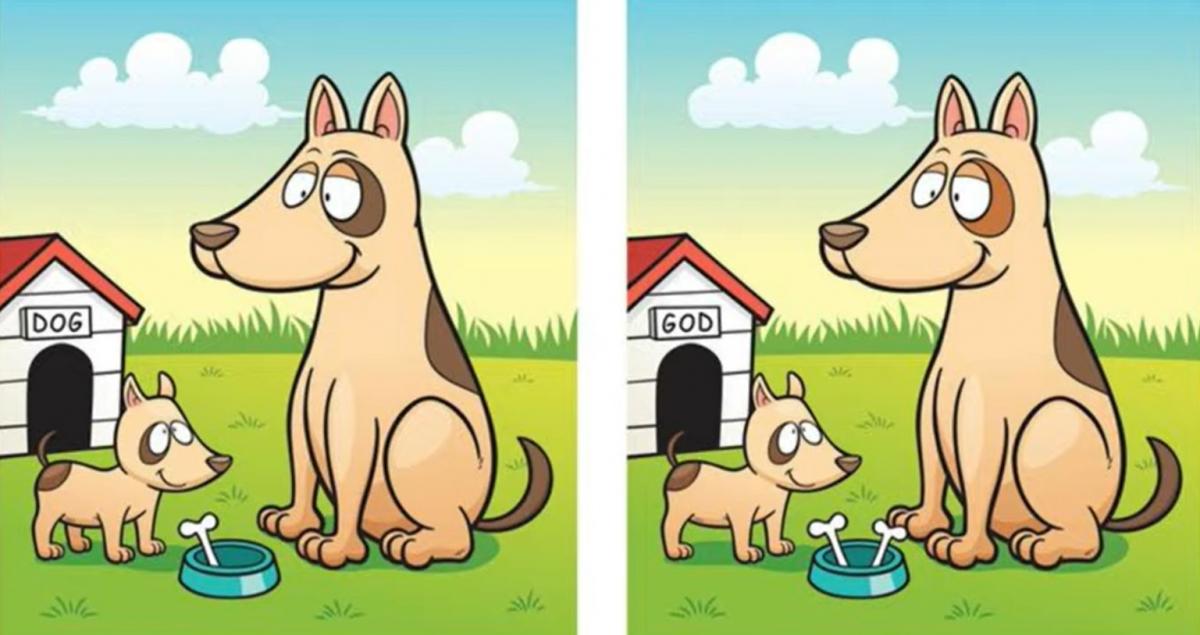 Gotowy do sprawdzenia swojej uwagi? Spójrz na dwa zdjęcia psa i szczeniaka. Na pierwszy rzut oka zdjęcia wyglądają dokładnie tak samo, ale w rzeczywistości jest między nimi pięć małych różnic.